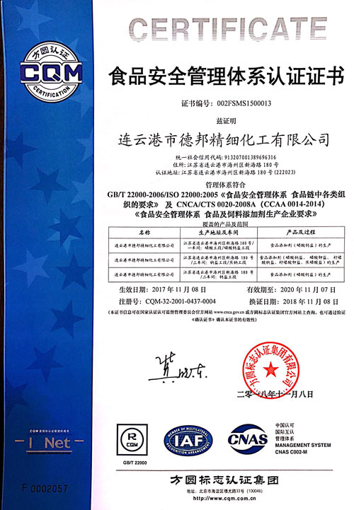 食品安全管理體系證書